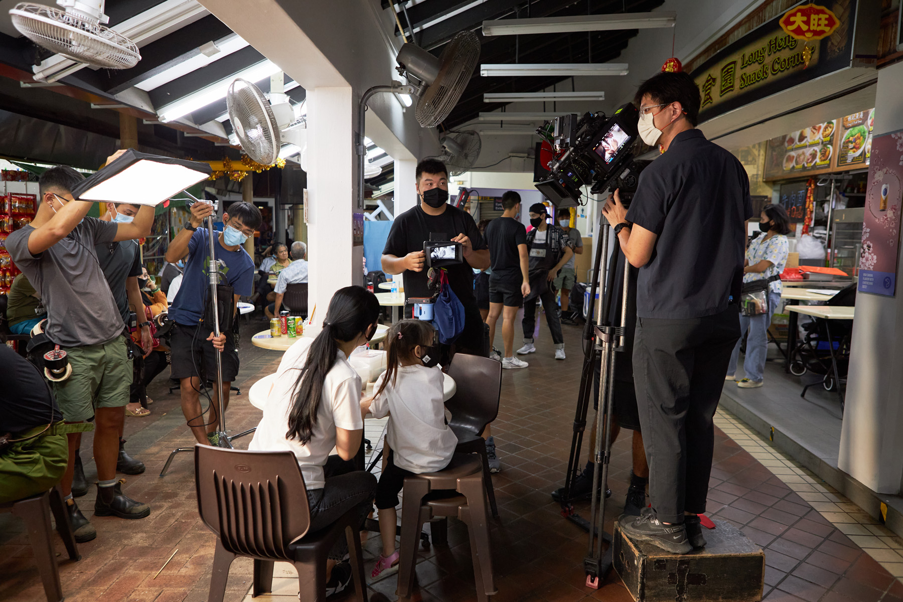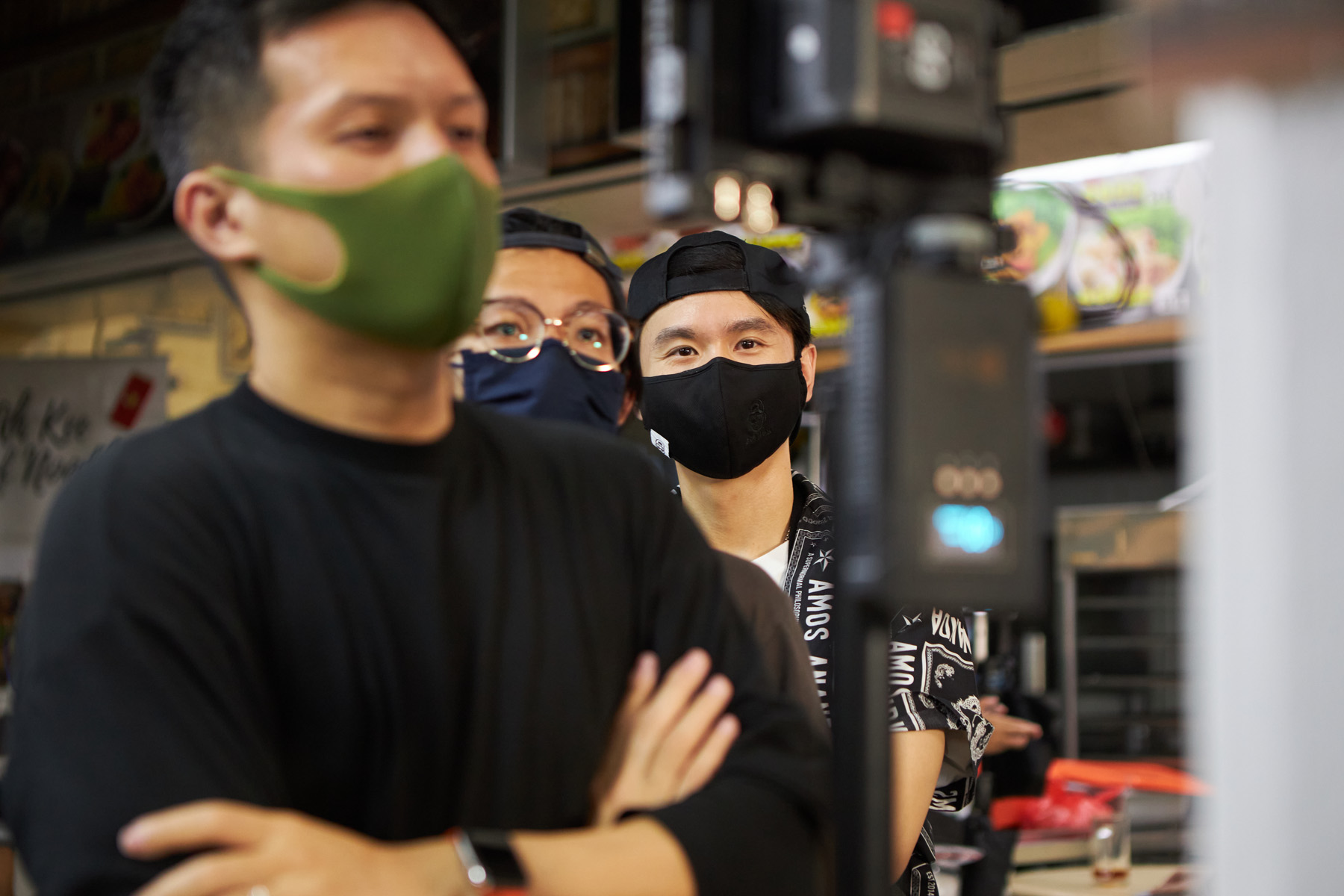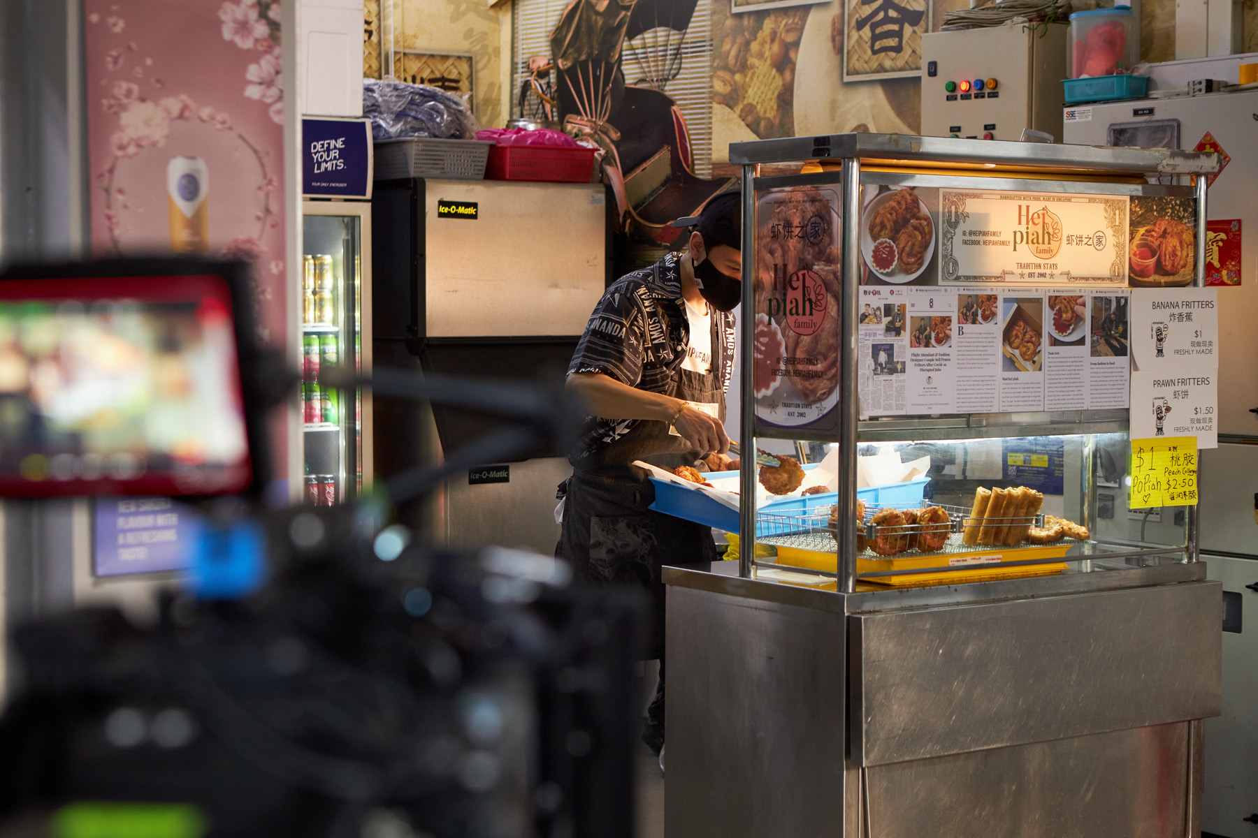 Amos got me to document what happens behind the scenes of his video shoot to be shown on the big screens of NDP, 2021, I believe. This was at his He-piah (Prawn Fritters) stall he had in Teck Whye back then. Above are photos I captured without crew elements in the foreground, just using the lights they had on set. Below are more BTS type of photos.